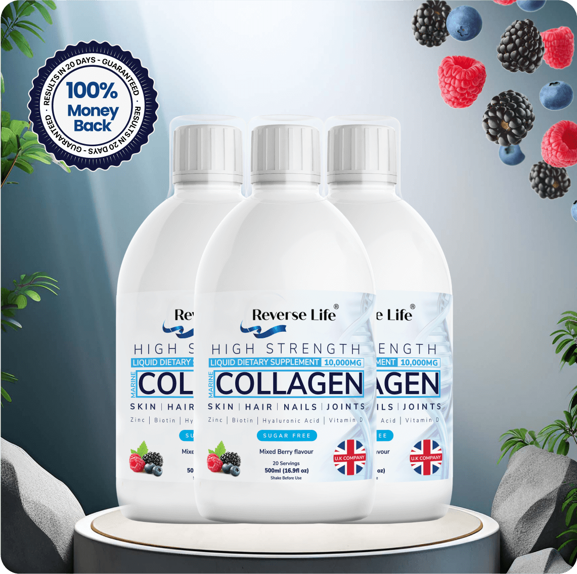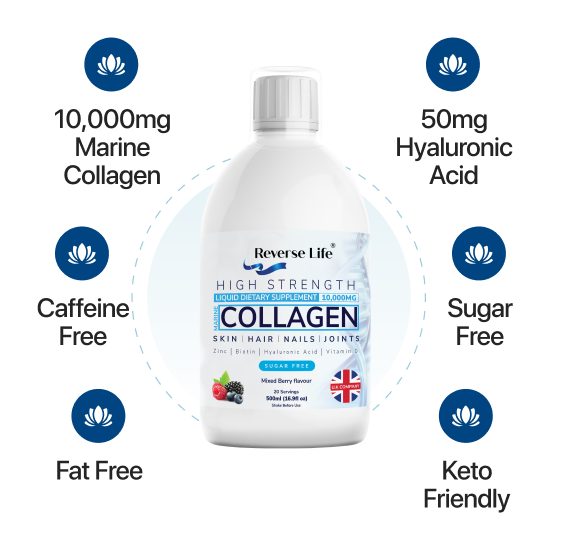 Gone are the days when fillers and surgery were the only options for treating sagging, ageing skin. Our Reverse Life Marine Collagen offers a gentle, gradual approach to rejuvenation that works with your body's natural processes.