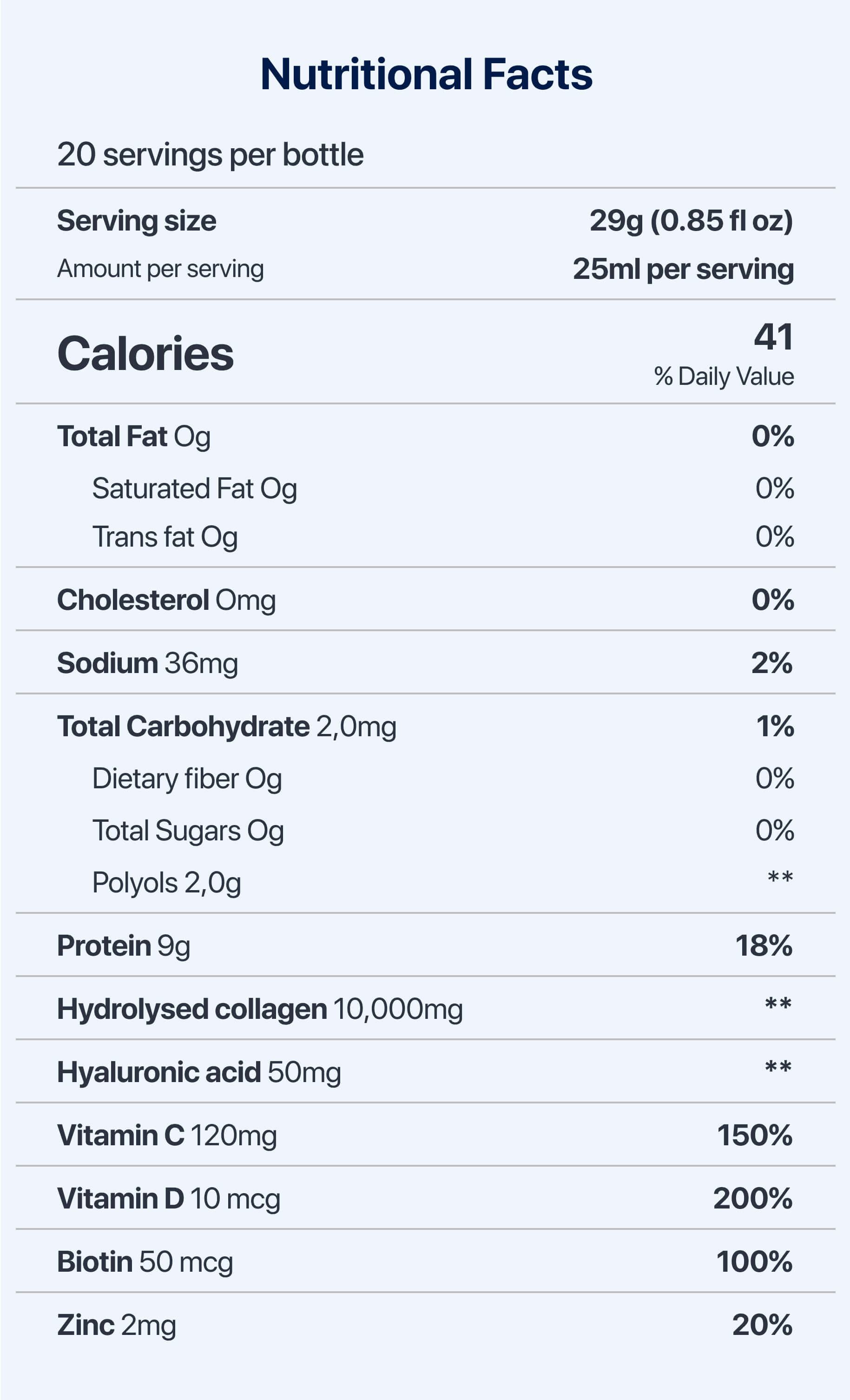 Other liquid collagen solutions on the market simply can’t compare to what we offer. For less than a bus ticket, you can experience the transformative power of hydrolysed collagen, including five more potent antioxidants designed to restore youthfulness. We’re proud to say that no other solutions on the market can match our formula!